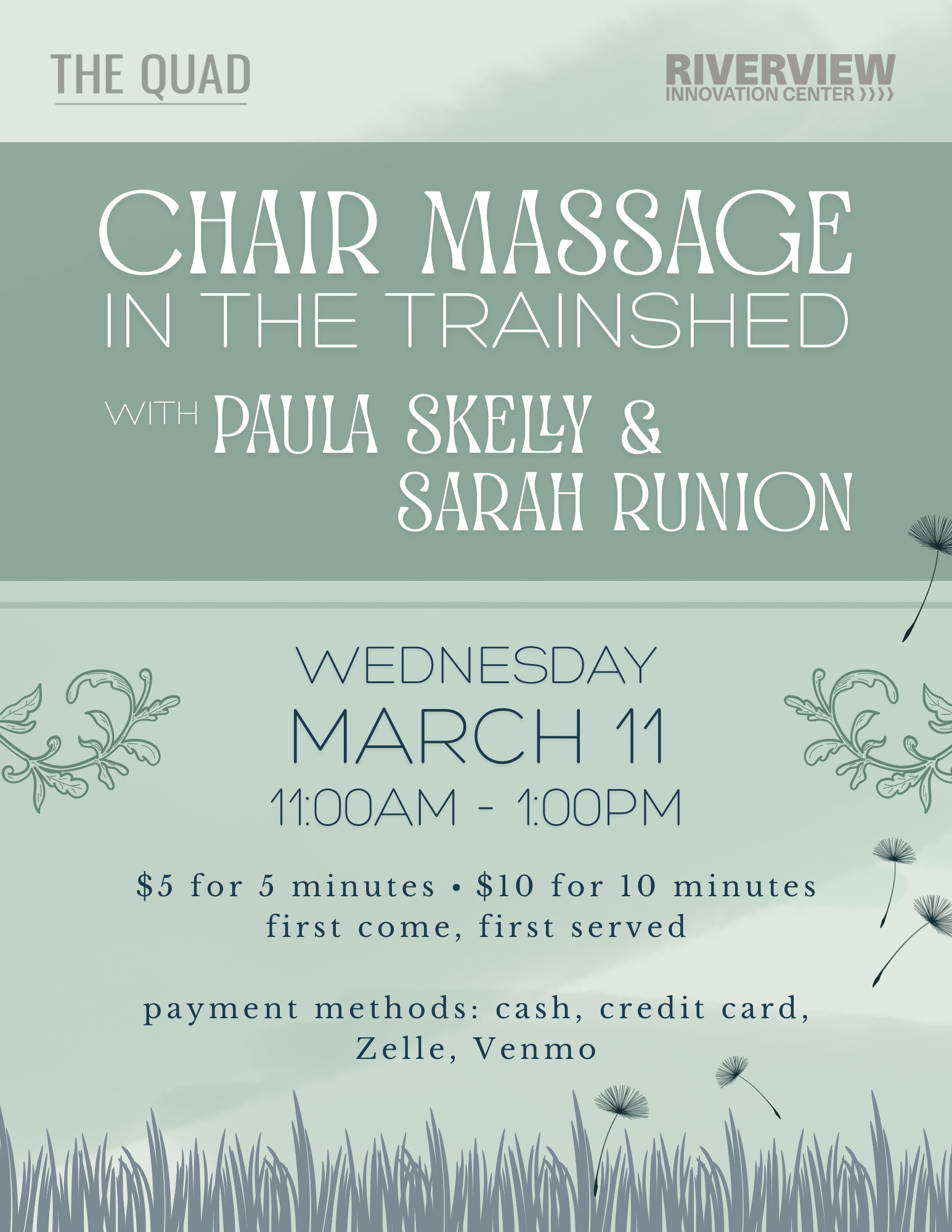 Stop by on Wednesday March 11th in the Train Shed to get a chair massage
